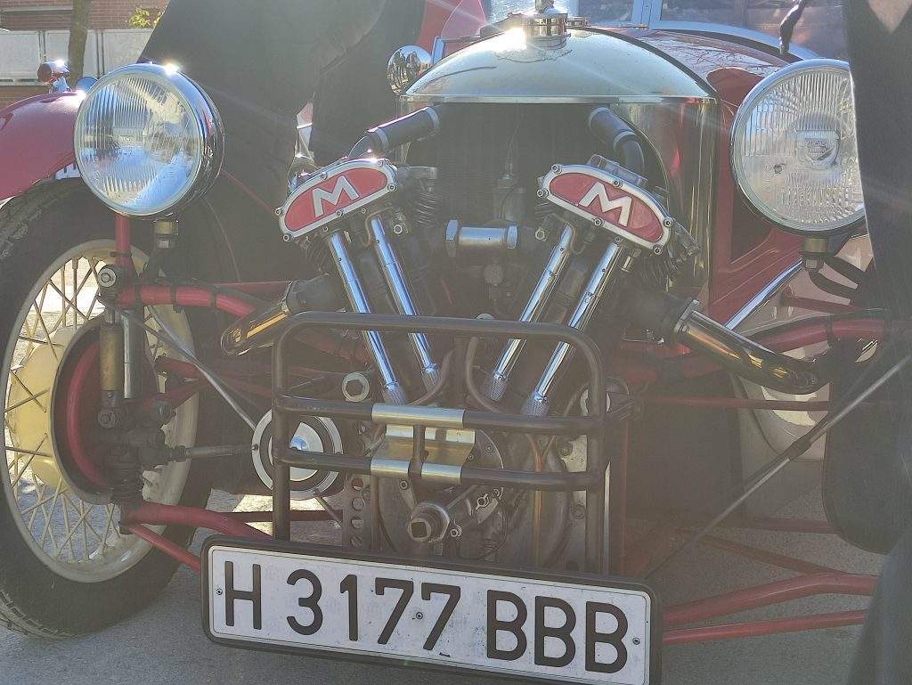 Se trataba de un MORGAN SUPER SPORT del año 1934. Morgan, una empresa familiar que mantiene la misma organización hasta nuestros días, empezó fabricando coches de tres ruedas, logrando así un abaratamiento en costos. Durante la crisis de los años treinta, este auto era famoso porque era calificado por una motocicleta al momento de generar impuestos.